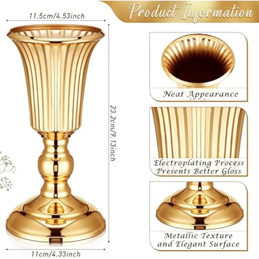 10 Pcs Elegant Decorative Gold Metal Trumpet Wedding or Birthday Party Centerpiece Vases for Table