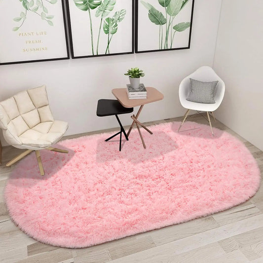 2.6x5.3 ft. Plush, Shaggy, Fluffy, Ultra Soft Oval Area Rugs for Kids Room, Bedside and Nursery