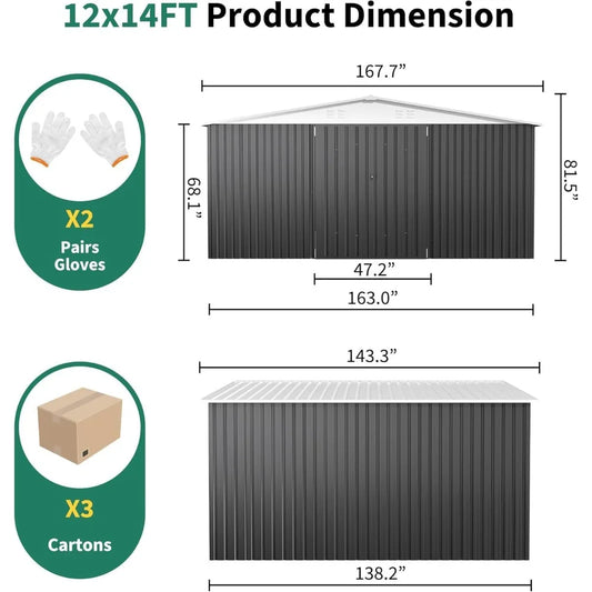 12x14 FT Garden Storage Shed with Updated Frame Structure and Lockable Doors.