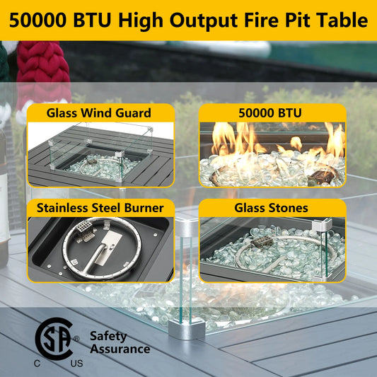36" Outdoor Wicker Square Patio Bar High Fire Propane Gas with Glass Fire Beads
