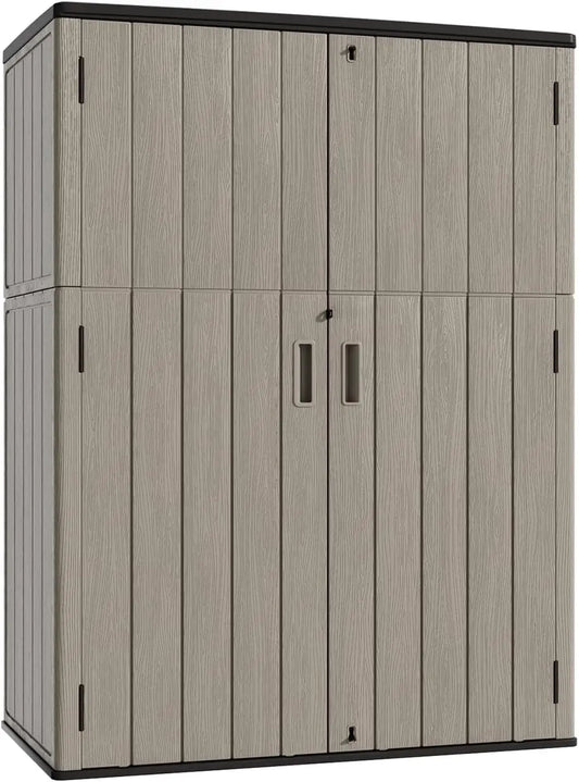 NEW 57 Cu. Ft. Vertical Outdoor Waterproof Resin Tool Storage for Patio Furniture (Coffee Color)