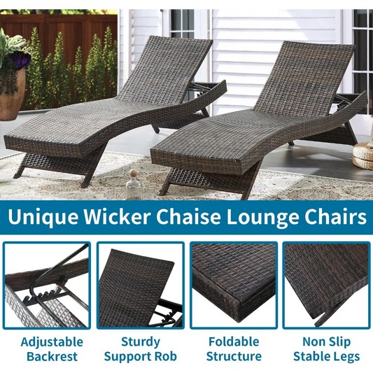 79'' Long Reclining Wicker/Rattan Chaise Lounge Set (Set of 2) for the Patio