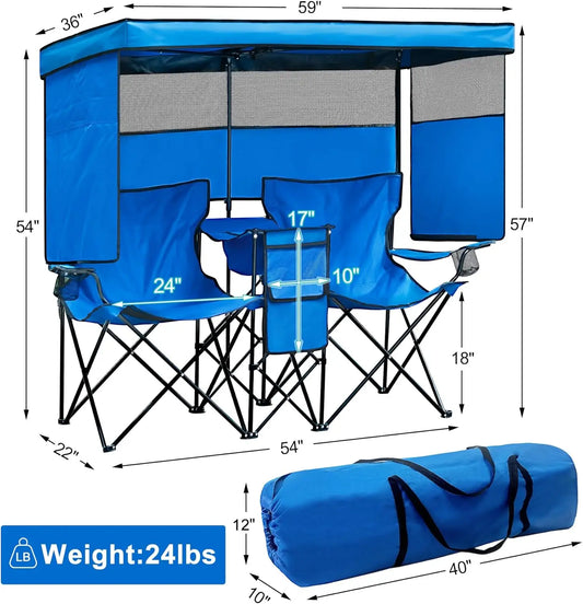 Folding Camping Chair with Shade Canopy with Cooler Bag for Outdoor Sports, Lawn Chairs