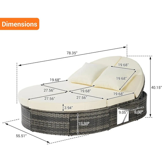 Outdoor Rattan Wicker Round Daybed with Retractable Canopy and Removable Cushions for Pool side Sunbed or Patio