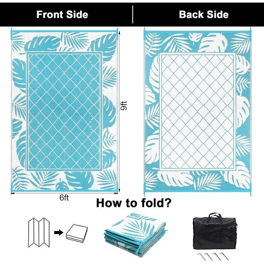 6'x9' Waterproof Reversible Plastic Straw Portable Outdoor Rug for Patio , Area Rug, or Camping