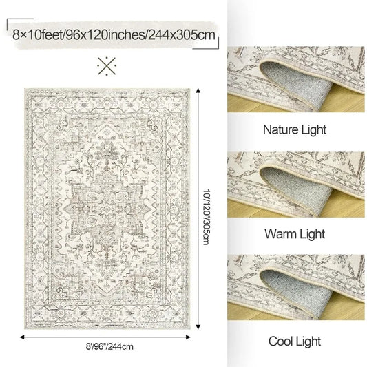 8'x10' Vintage Area Neutral Non-Slip Stain Resistant Washable Rug for Living Room and Dining Room