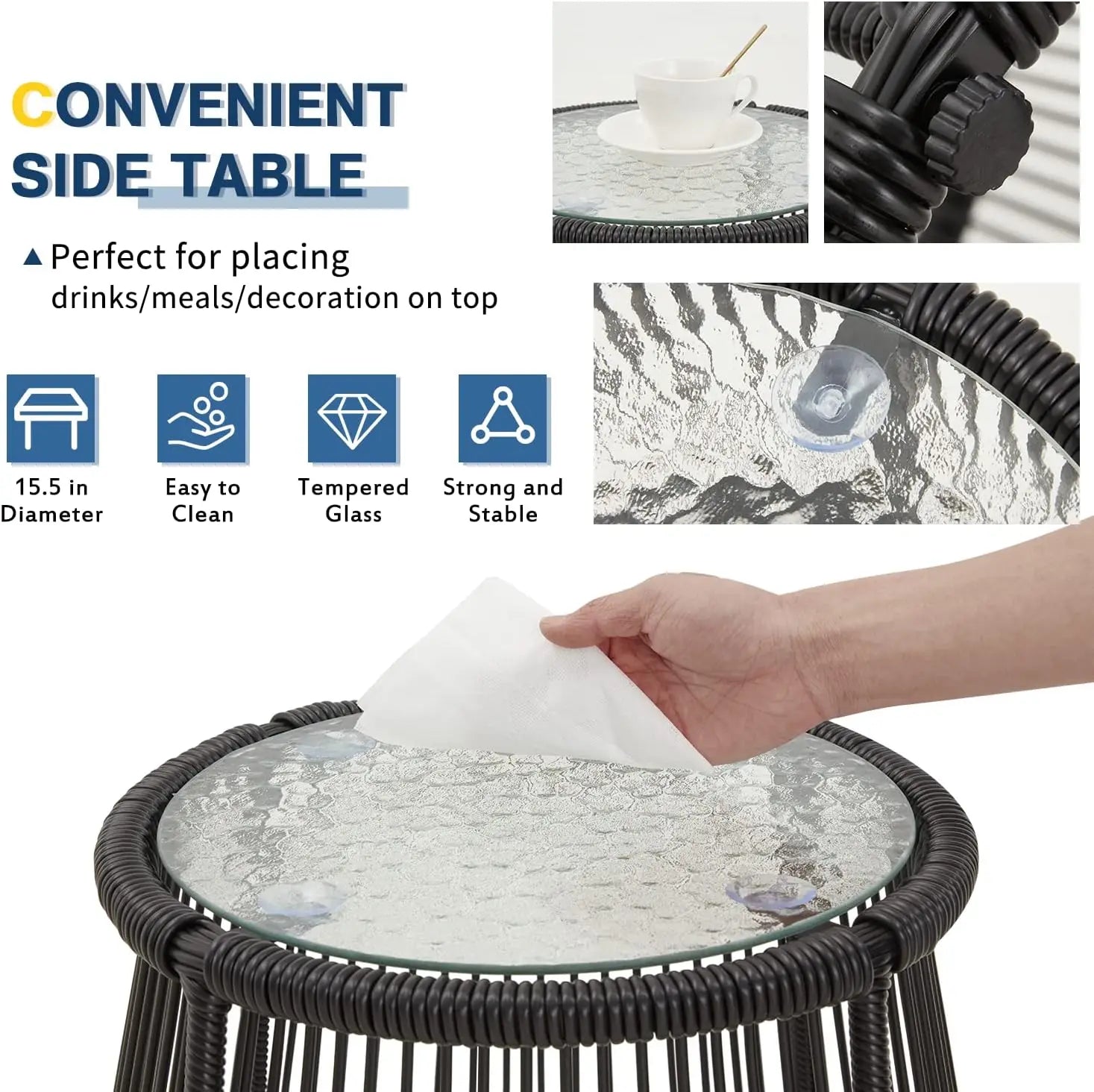 2. [ Tempered Glass Table Top ] The elegant end table comes with a tempered glass top for easy cleaning, so you can put down your plate or coffee cup without getting dirty.